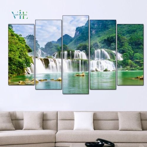Chi tiết: – Tranh giữa: 30X90CM – Hai tranh bên: 30X75Cm X2 Bức – Hai tranh ngoài cùng: 30X60Cm X2 Bức